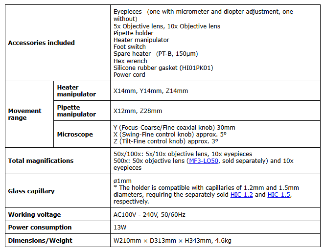 It supports a range of customization techniques—including cutting, fire-polishing, bending, and spike formation—so pipettes can be tailored to specific experimental needs. Fine adjustments are made using reliable control knobs located near the microscope, with the option to switch the focusing knob to the left side for user preference.